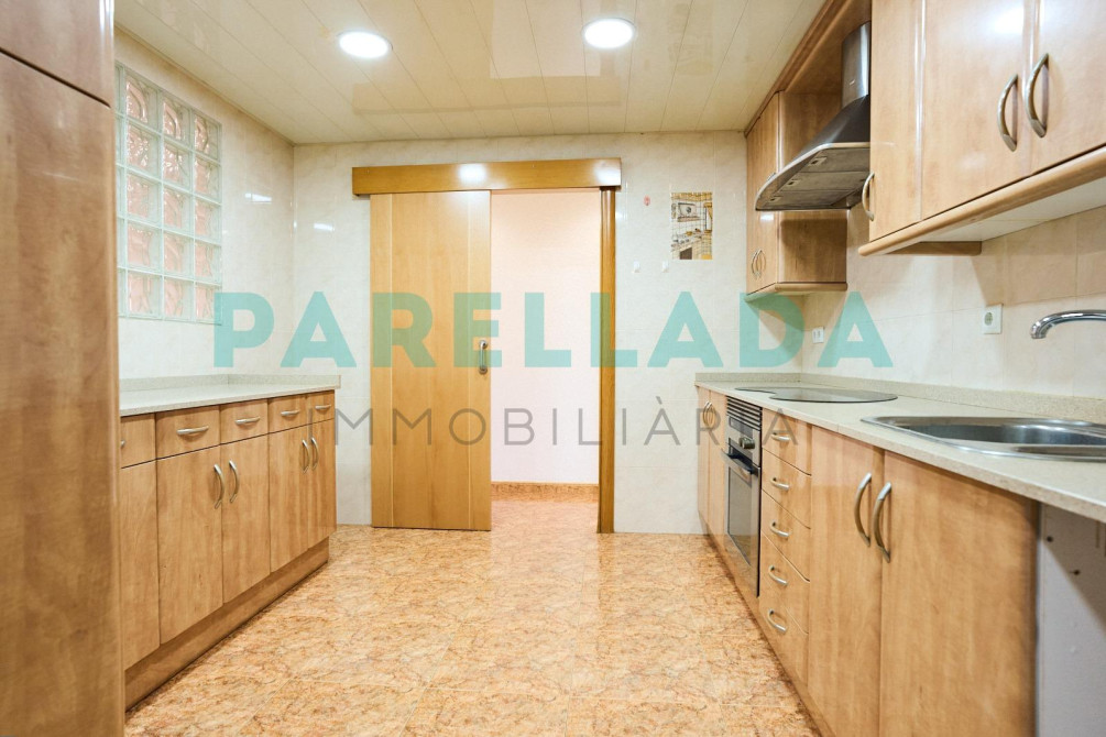 La cuina és àmplia, d’aproximadament 10 m², molt funcional i amb accés directe a un agradable pati exterior, perfecte per gaudir de moments a l’aire lliure, àpats tranquils o fins i tot com a zona de relax. El saló-menjador, de 24 m², destaca per la seva amplitud i lluminositat natural, gràcies a la seva orientació sud-est, i disposa també de sortida directa a un parc proper, aportant una sensació de natura i tranquil·litat en plena ciutat.